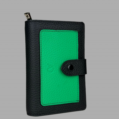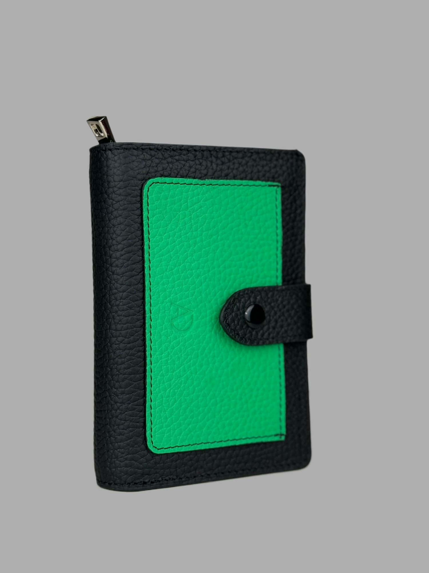 Ahıska Bozuk Para Bölmeli Deri Cüzdan Siyah Yeşil