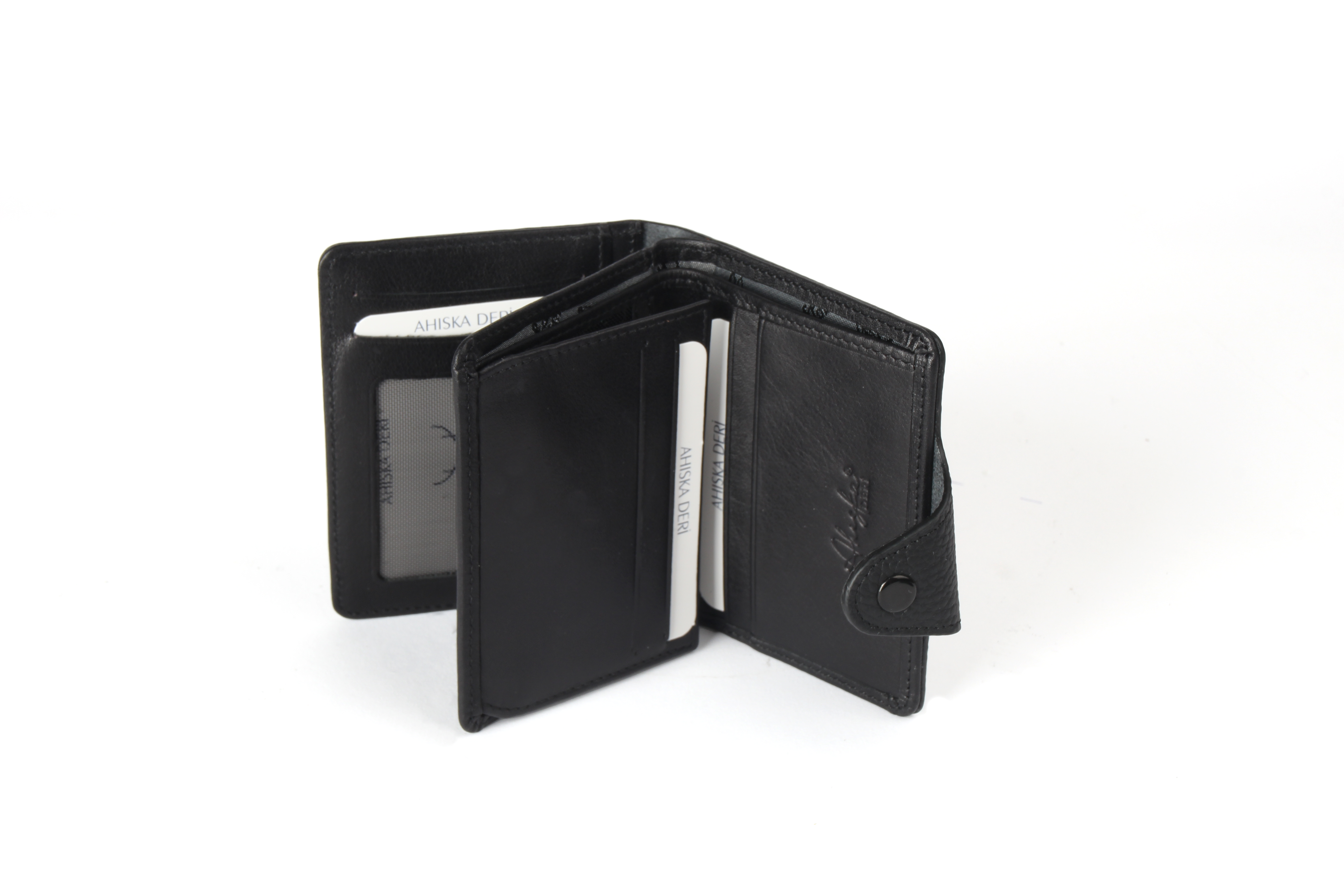 Ahıska Çıt Çıtlı Naturel Unisex Deri Cüzdan Siyah
