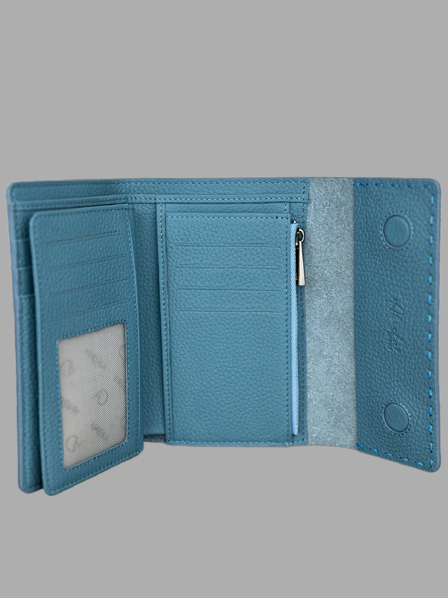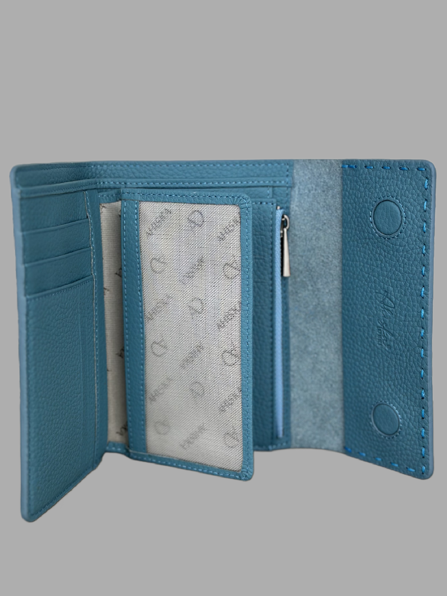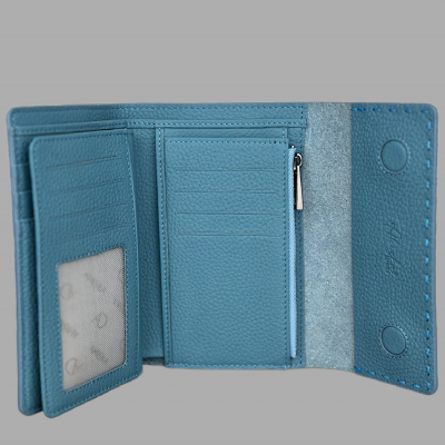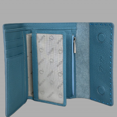 Ahıska Saraç Dikişli Kadın Deri Cüzdan 9708 Mavi