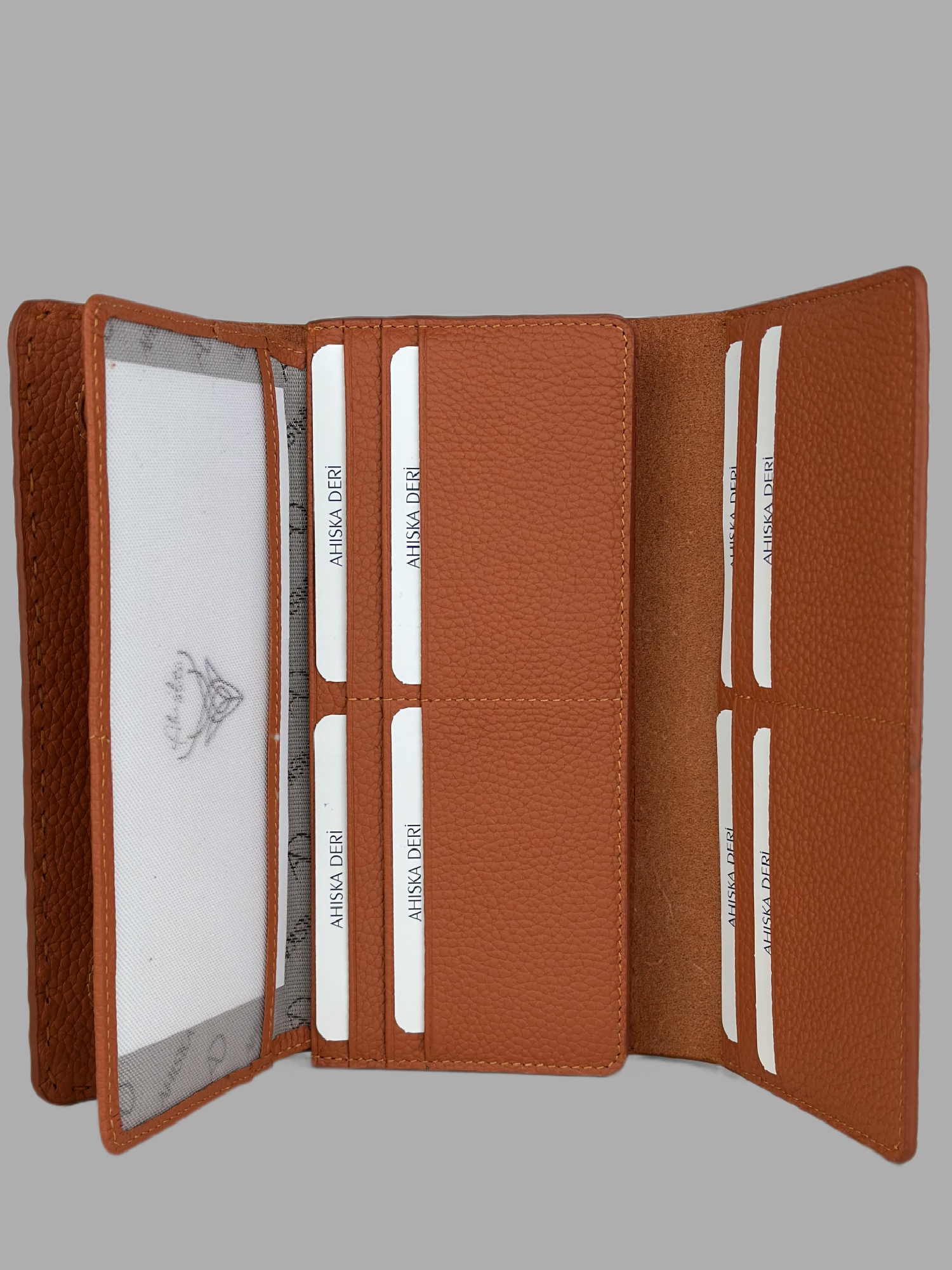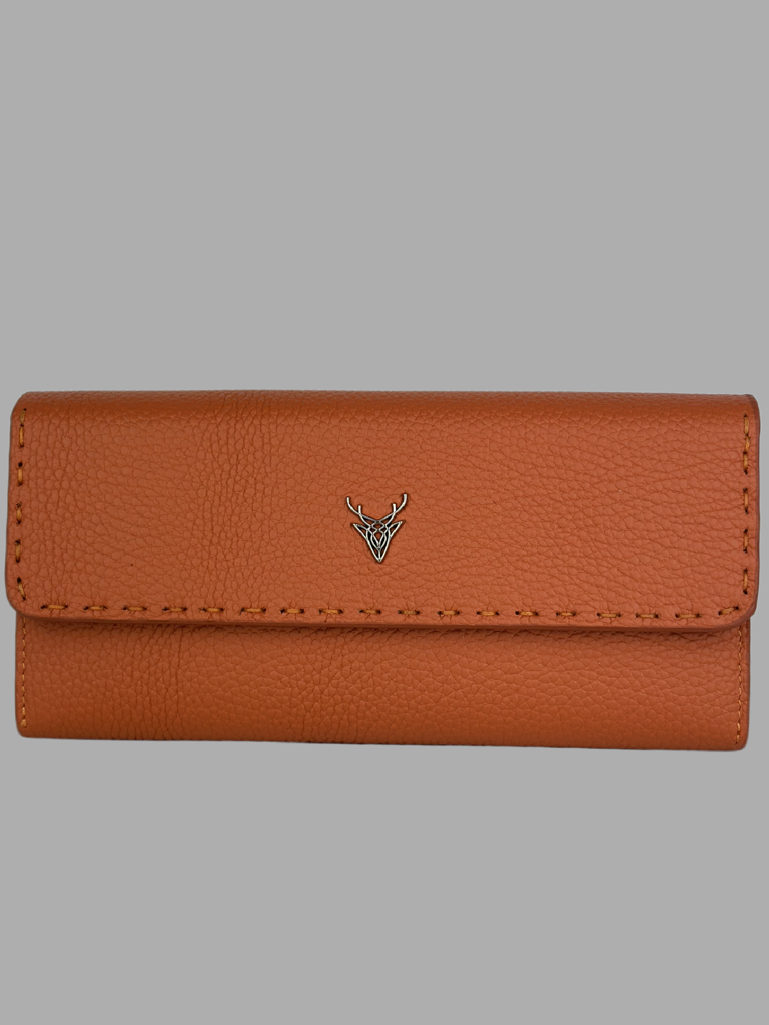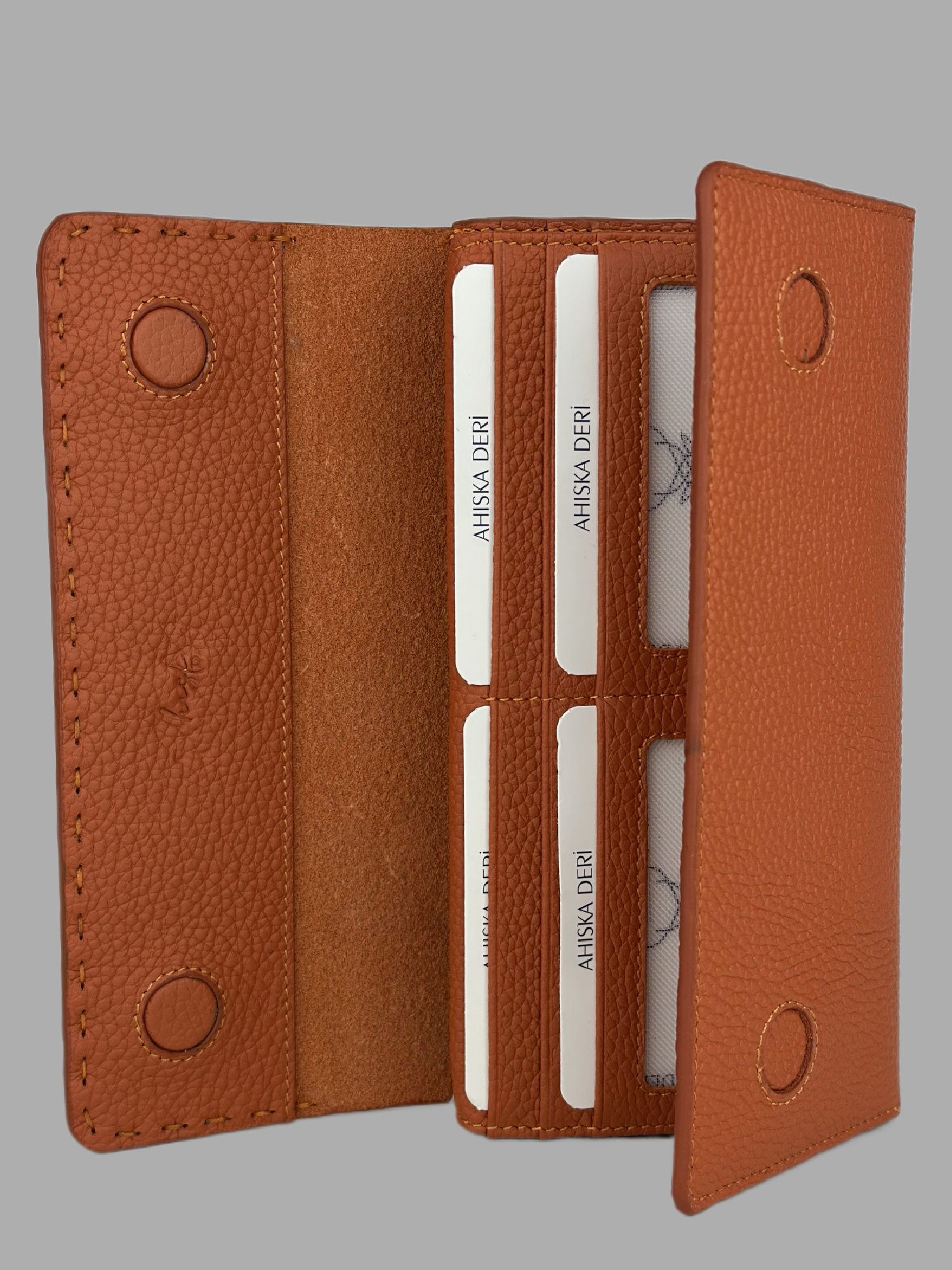 Ahıska Saraç Dikişli Kadın Deri Cüzdan Turuncu