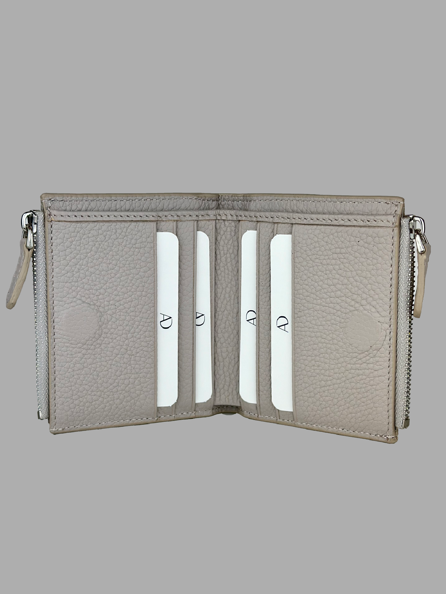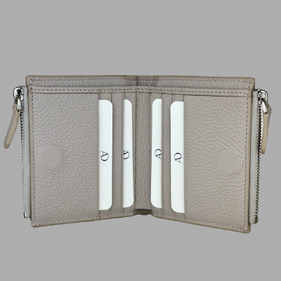 Çift fermuarlı bej deri kadın cüzdan